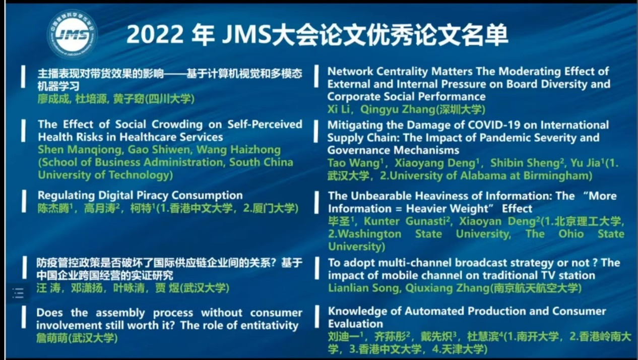 From December 16 to 18,2022, the 19th JMS China Marketing Science Annual Conference and Doctoral Forum was held online, sponsored by the Editorial Board of Journal of Marketing Science (JMS) and organized by the School of Economics and Business Administration of Chongqing University. The paper "The Unbearable Heaviness of Information: The “More Information = Heavier Weight” Effect" completed by teacher Bi Sheng from the Marketing Department was nominated for the 2022 JMS Conference.
