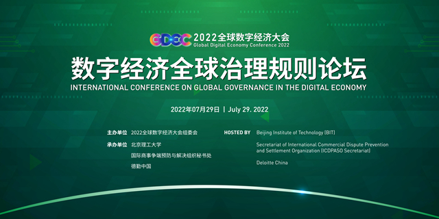 As one of the sub-forums of the 2022 Global Digital Economy Conference, the forum was jointly hosted by Beijing Institute of Technology, the Secretariat of the International Commercial Dispute Prevention and Settlement Organization, and Deloitte China. With the theme of "Building a Healthy Ecology of the Digital Economy", the forum invited guests from home and abroad to jointly discuss the vision of digital economy governance, cross-border data flow, digital taxation and currency, digital regulation, and digital dispute settlement.