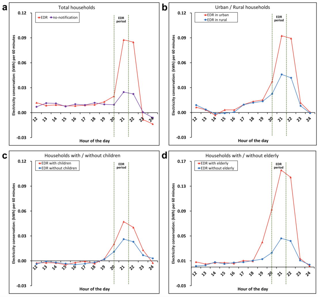 Figure 1: Effect of incentive-based EDR measures on electricity consumption during peak periods of different populations.