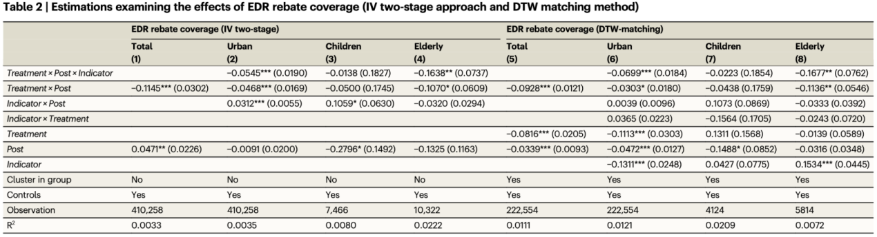 Table 1: Evaluate the impact effects of the EDR incentive coverage