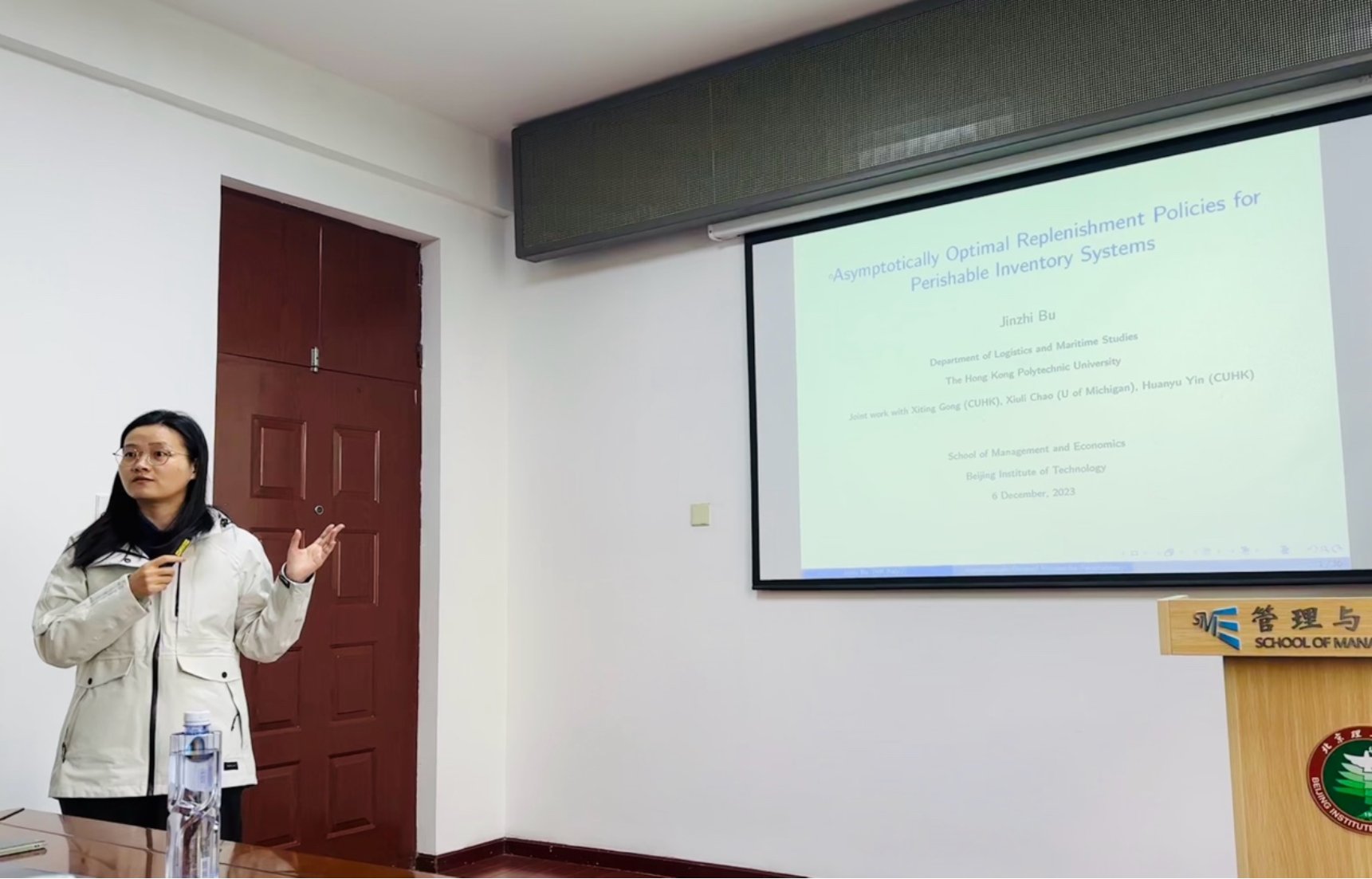 2023年12月7日下午,香港成品人和一品二品的区别物流与航运系卜金枝助理教授应邀,进行了题为“Asymptotically Optimal Replenishment policies for Perishable Inventory Systems”的学术报告,吸引了学院师生积极参与。