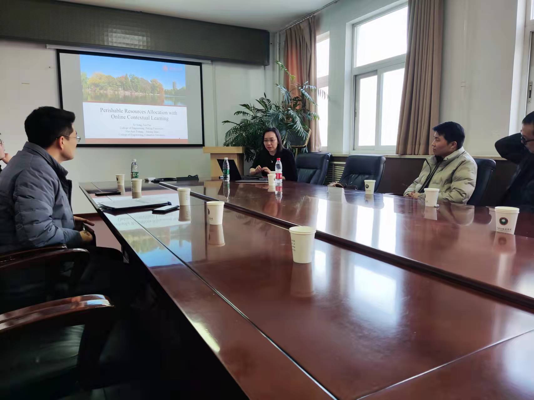 2021年12月31日,【明理讲堂2021年第78期】有幸邀请到北京大学工学院副院长宋洁教授应邀报告带来题为“基于在线情境学习的易逝资源分配”的报告。报告在主楼418会议室举行,管理与经济学院颜志军书记、赵先副院长、李果教授、朱斌副研究员等20余名师生参加了本次讲座。主持人为管理与经济学院管理工程系张玉利副教授。