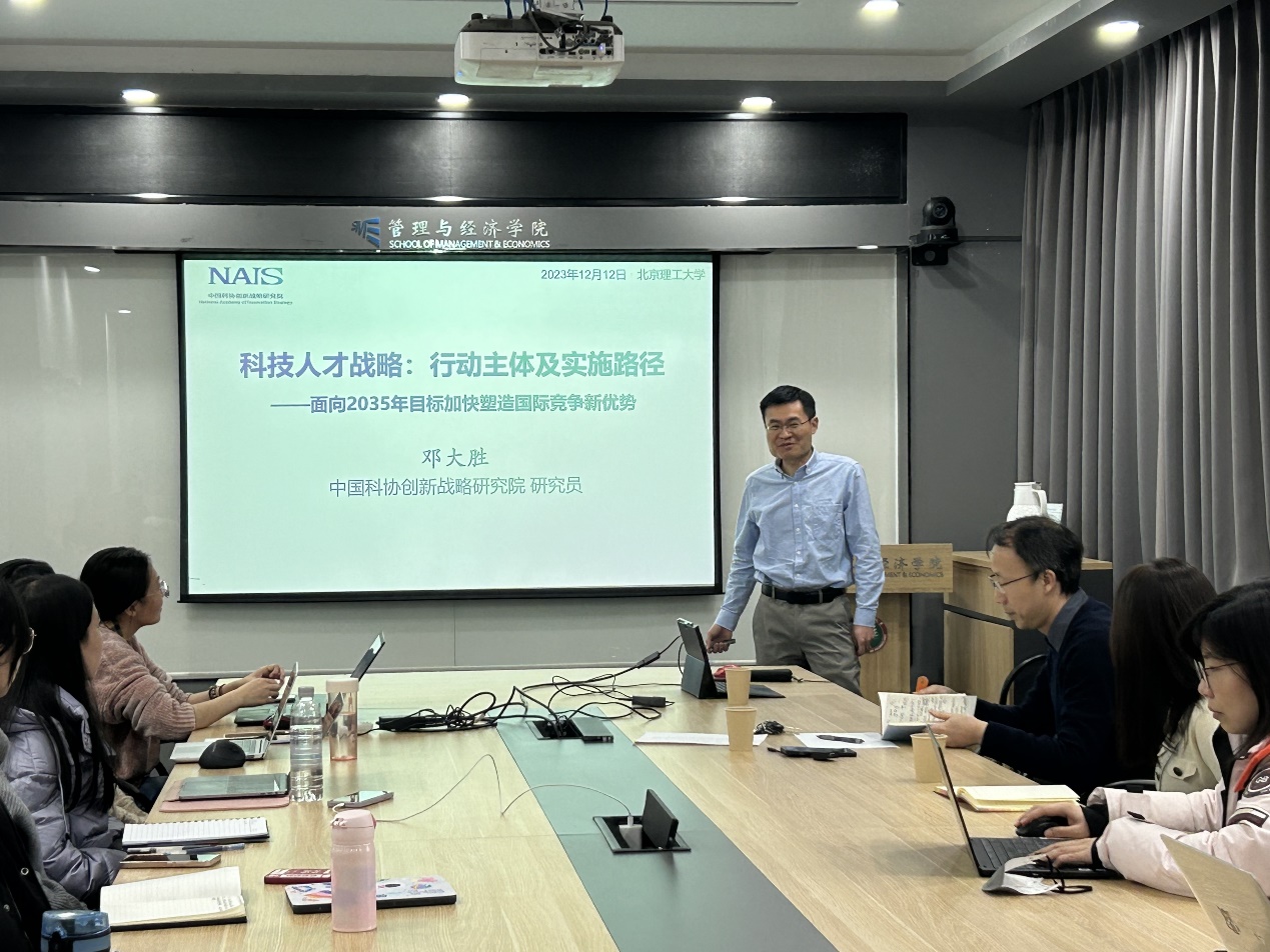 2023年12月12日下午,中国科协创新战略研究院邓大胜研究员应知识管理与数据分析实验室邀请,做题为“科技人才战略:行动主体及实施路径”的主题报告。报告由汪雪锋教授主持,学院众多师生参与了本次学术报告。
