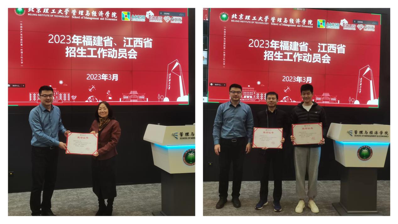 为切实做好2023年招生工作,3月7日中午,管理与经济学院协同保卫部、技术转移中心召开福建、江西招生组工作动员会,会议在中关村校区主楼240和良乡校区文萃楼L216同时举行。学校招生办公室主任王浩宇、党委保卫部副部长吴世华和技术转移中心副主任韩兴杰、管理与经济学院院长王兆华、党委书记颜志军以及近60余位领航老师参加了本次会议,会议由副书记、副院长彭明雪主持。