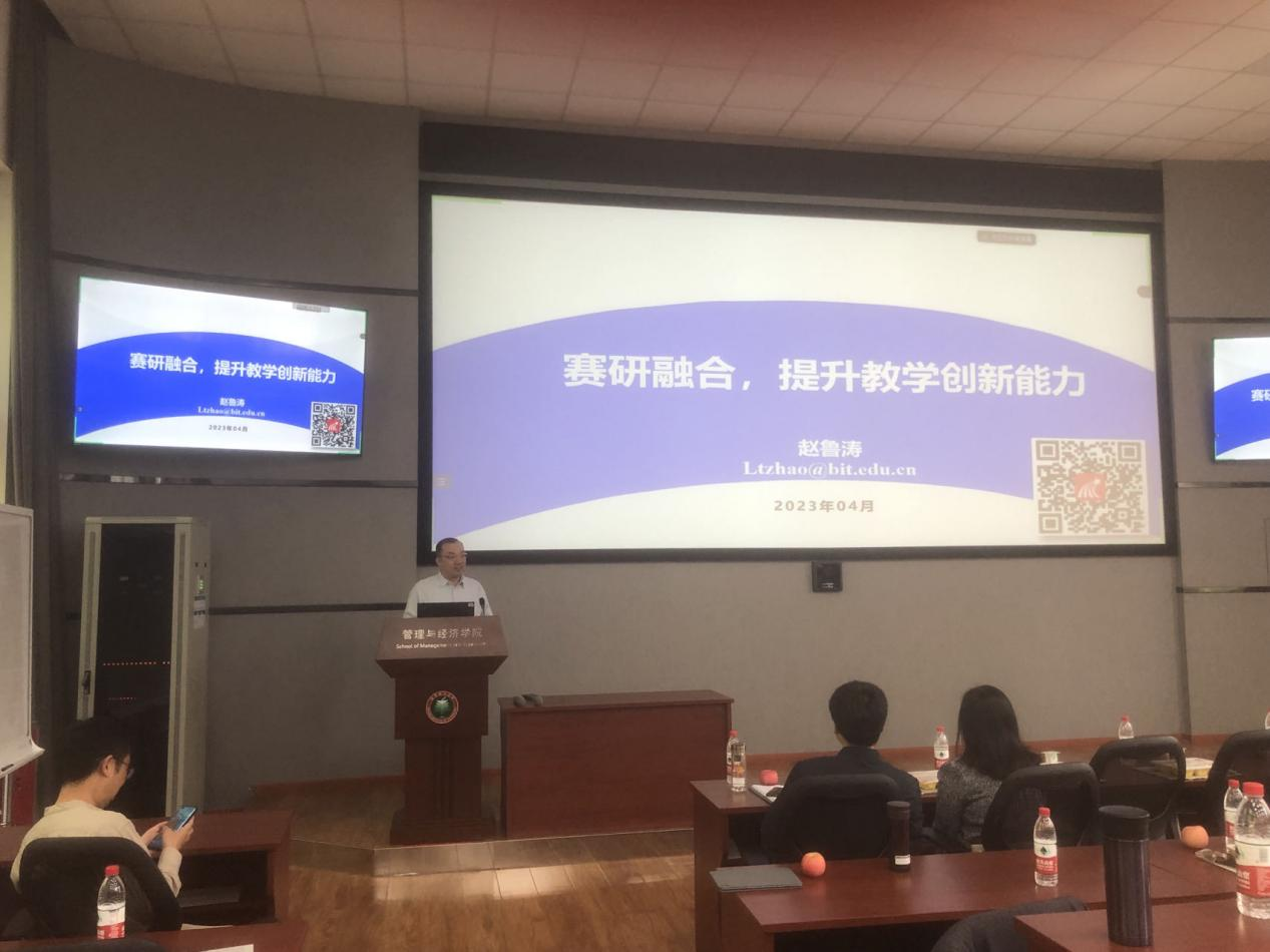 最后,赵鲁涛教授从“以赛促教,提升教学水平”、“以研促改,强化教学能力”、“信息赋能,助力教学创新”、“传承匠心,凝聚团队智慧”等四个方面,并结合自身参赛经历进行了“赛研融合,提升教学创新能力”主题报告。赵鲁涛教授详细地阐述了青教赛及教创赛的整体流程、评分标准以及个人的参赛体会,强调了教育教学中教学设计和内容质量的核心位置,并同与会教师们进行了深入的教学交流,最后就增强课堂互动及提升教学效果的软件及工具进行了经验共享。