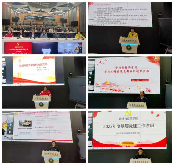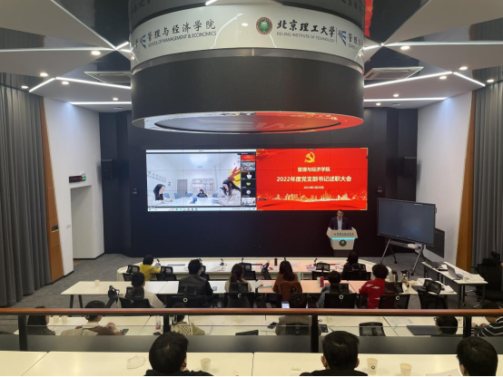 管理与经济学院党委认真学习贯彻党的二十大精神、北京市第十三次党代会精神,落实全面从严治党工作要求,于2月28日召开基层党支部书记抓党建现场述职会,会议以两校区视频连线方式进行。学院党委委员、党政联系会成员、教师代表、全体师生党支部书记参加会议,会议由副书记、副院长彭明雪主持。