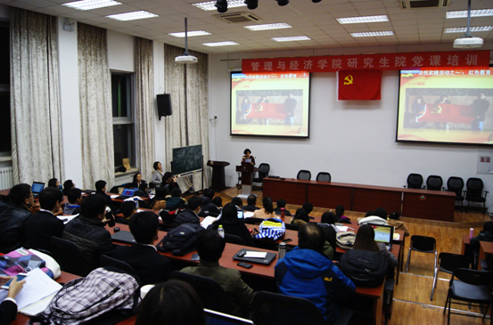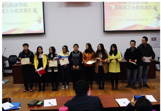 2014年11月16日星期日晚七点,管理与经济学院2014—2015年度研究生入党积极分子第四次党课培训在主楼241举行。本次党课采取各小组党课实践汇报形式,由各个小组选派评委对其他小组的实践活动汇报情况进行考核。