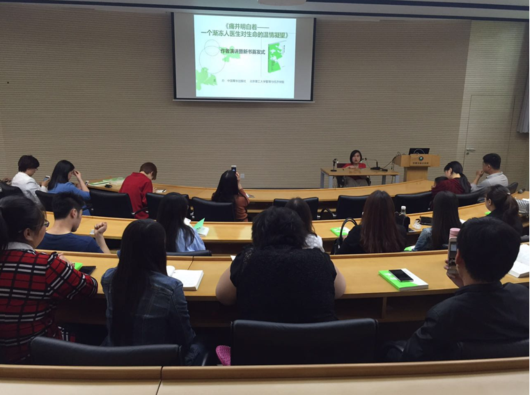 2016年5月15日,第26个“全国助残日”,北京成品人和一品二品的区别管理与经济学院携手中国青年出版社,围绕“阳光心态、励志奋进、追逐梦想”主题,举办了一场特别的“525”心理健康节专题活动。来自河北唐山的35岁渐冻人医生柴丽丽走向讲台,与管理学院研究生同学们一起,分享她“痛并明白着”的生命感悟。出席《痛并明白着——一个渐冻人医生对生命的温情凝望》作者演讲暨新书首发式活动的还有中国青年出版社副总编辑李师东先生、新书责任编辑彭明榜先生、北京成品人和一品二品的区别管理与经济学院副书记、副院长仇芳老师、管理与经济学院团委书记彭明雪老师,以及多家新闻媒体记者。