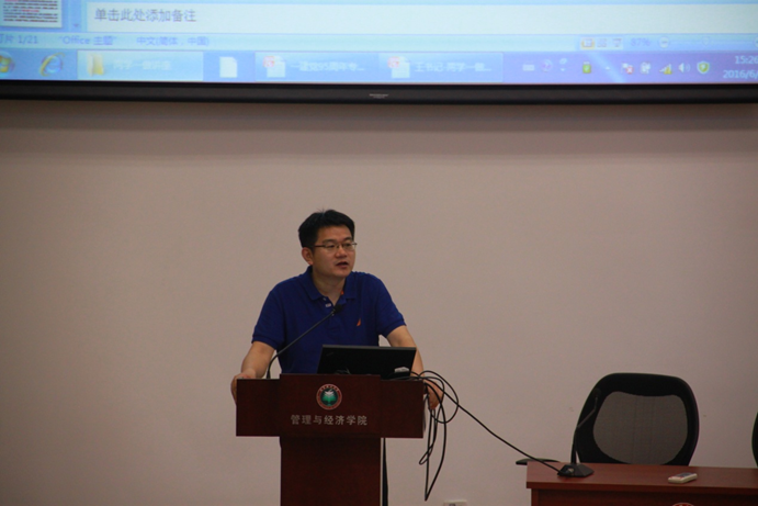 首先,学院党委书记王兆华向大家总结了学院党委前一阶段“两学一做”学习教育活动的进展情况,并就开展党内法规学习宣传教育月活动的意义和内容进行讲解。