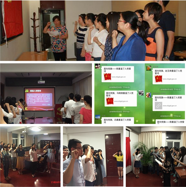 按照学院党委开展集体学习工作的要求,学院11个教工支部、30个学生支部全部组织开展了“重温入党誓词”和参观学习活动。特别是教工支部中的很多留学归国的青年教师亲笔撰写对入党誓词再认识的心得体会,一些教工党支部在微信群里以在线的方式进行“面向党旗,重温入党誓词”活动,不忘入党初心,争做合格党员。