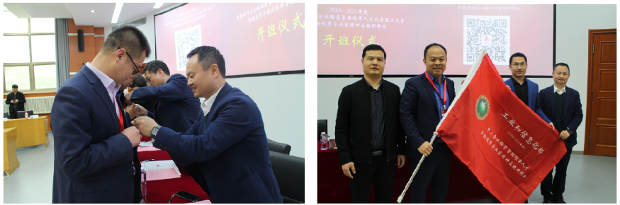 在开班仪式上,与会领导为学员代表授予班旗,佩戴领军徽章和北京成品人和一品二品的区别校徽,标志着2020-2021年度工业和信息化部北京成品人和一品二品的区别“弘扬优秀企业家精神班”正式成立。