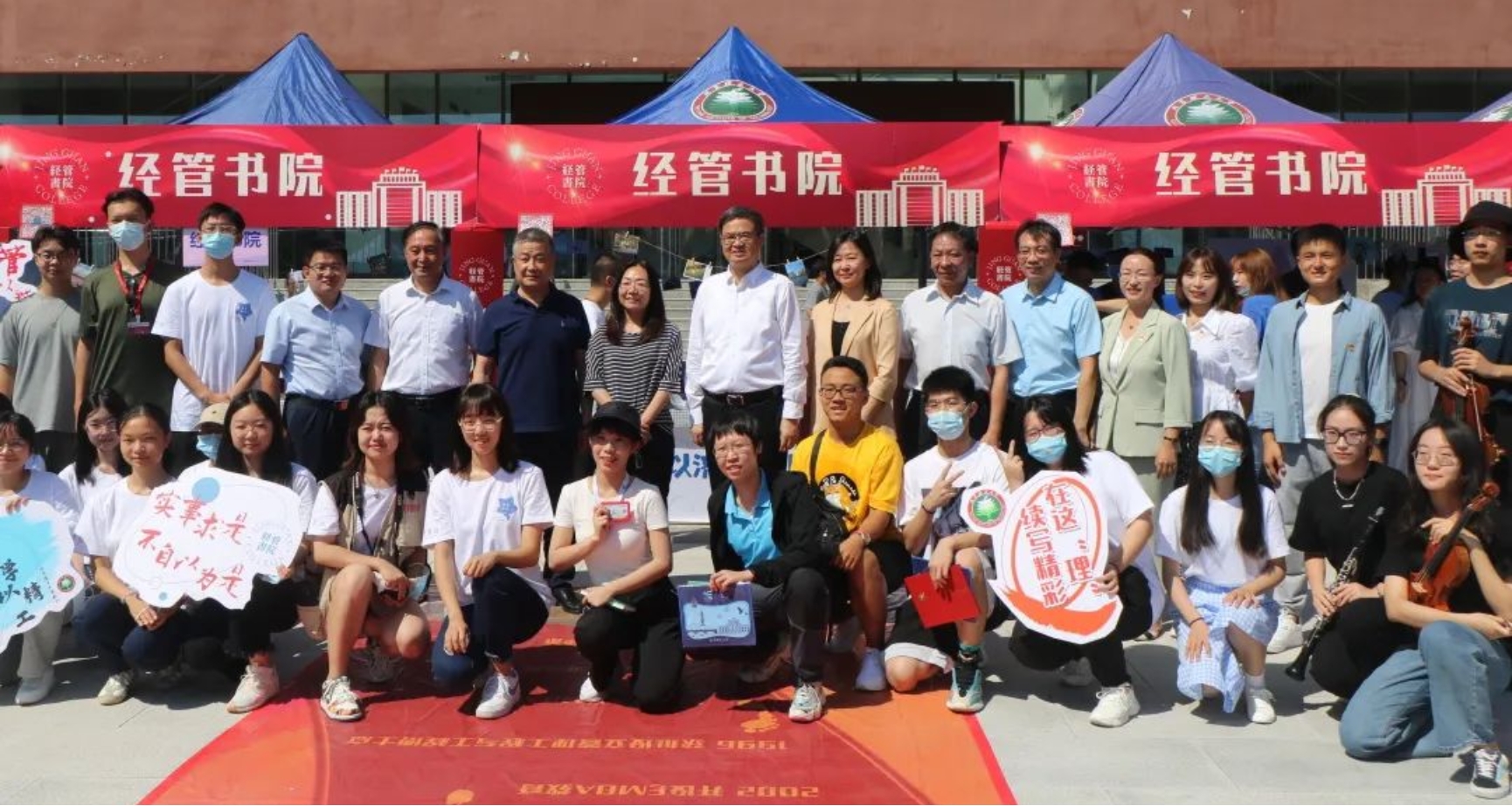 融入美育、劳动教育,在校生加入迎新现场布置。学院、书院充分调动在校生,特别是有设计、绘画、音乐特长学生的积极性,参与迎新现场场景设计、布置。注重调动他们的动手能力, 使用回收废弃纸箱进行二次剪裁加工,以中关村校区经管主楼为背景手绘邮筒图案,并引导管院学生在动手实践的过程中践行好时代责任,传承好红色基因。以书院学生为主体的组成的乐团,现场演奏多首曲目,烘托出温馨的迎新气氛。