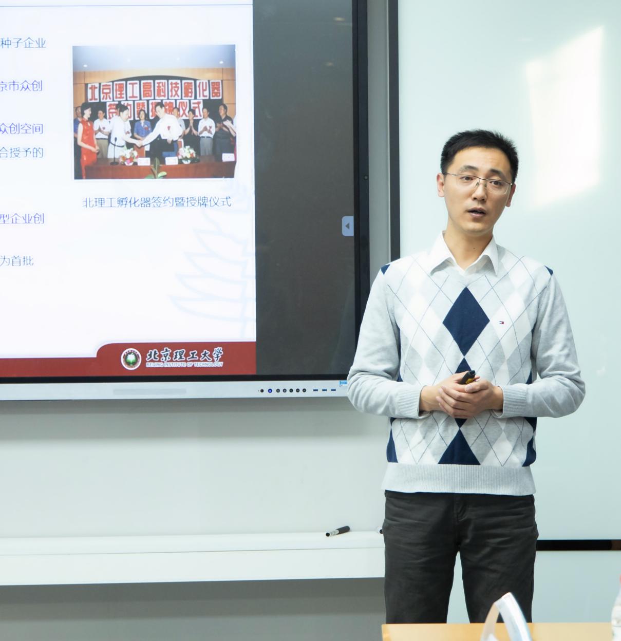 王智超向大家介绍了北理工孵化器的发展经历及政策,包括为校友企业提供多样化增值服务、法律与知识产权服务、人力资源服务、创业培训服务、政府资金申请、投融资等多种服务,让现场校友和对创业感兴趣的在校生对于北理孵化器有了更深层次的了解和认识。
