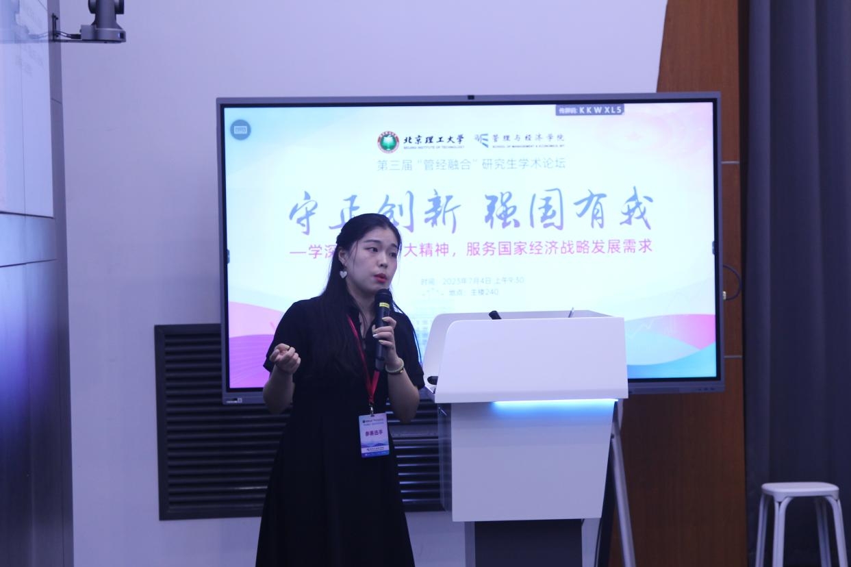 “本次研究生学术论坛让我受益匪浅。领航前沿科学问题,来自不同优秀高校的专家教授为我们带来了别开生面的报告,为我未来的相关研究提供了指引与方向。浸润二十大精神,与会同学从不同课题、不同角度提出的管理学与经济学研究,拓宽了我对于服务国家经济战略发展需求的知识面。针对我们研究生的学术汇报,各位专家提出的问题与建议让我更加深入地意识到研究问题应顺应国家时代需求,研究方法应落在实处。希望‘管经融合’研究生学术论坛能越办越好!”来自北京成品人和一品二品的区别管理与经济学院的王寒同学这样分享她的感受。